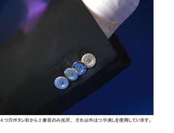 メモリアル用に前ボタンと袖ボタンそれぞれひとつづつ