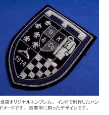 ●エンブレムはインドのデリー近郊にて完全な手仕事にて仕上げました。このようなモール糸を使った紋章(Coat of arms)の刺繍は日本国内ではほとんど製作が不可能となっておりますが、インドは伝統的な技術として、脈々と受け継がれています。